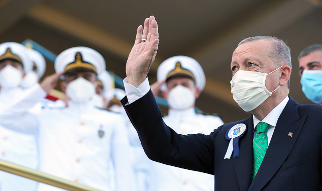 Kara Harp Okulu'ndan mezun olan 903 Türk ve misafir teğmenin ardından, bugün de Deniz Harp Okulundan mezun olan 298 ve Hava Harp Okulundan mezun olan 251 teğmeni tebrik eden Erdoğan, teğmenlere görev yerlerinde, misafirlere ülkelerinde başarılar diledi.