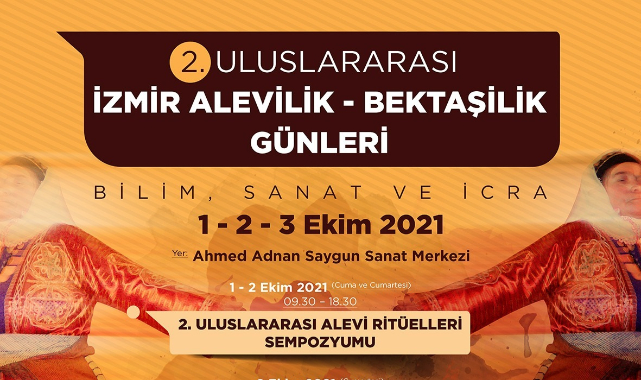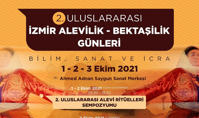 İzmir Büyükşehir Belediyesi tarafından ikincisi düzenlenen Uluslararası Alevilik Bektaşilik Günleri 1-3 Ekim 2021 tarihleri arasında ücretsiz ve halka açık olarak Ahmed Adnan Saygun Sanat Merkezi’nde yapılacak.