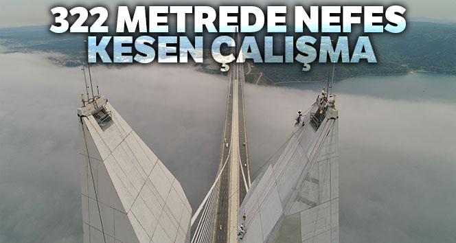322 metrelik yüksekliği ile eğik askılı köprü sınıfında dünyanın en yüksek asma köprüsü olan Yavuz Sultan Selim Köprüsü’nde işçilerin nefes kesen bakım onarım çalışmaları havadan görüntülendi. Eşsiz sis manzarası karşısında güvenlik halatları ile sarkarak çalışan işçilerin zorlu çalışma koşulları çekilen görüntülerle gözler önüne serildi.