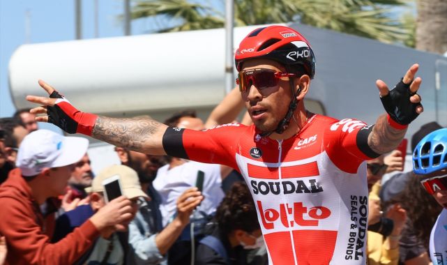 Cumhurbaşkanlığı himayelerinde, Türkiye Bisiklet Federasyonu tarafından düzenlenen 57. Cumhurbaşkanlığı Türkiye Bisiklet Turu'nun (Tour of Türkiye) ilk etabını Belçika'nın Lotto Soudal takımından Avustralyalı Caleb Ewan (önde) kazandı