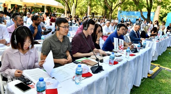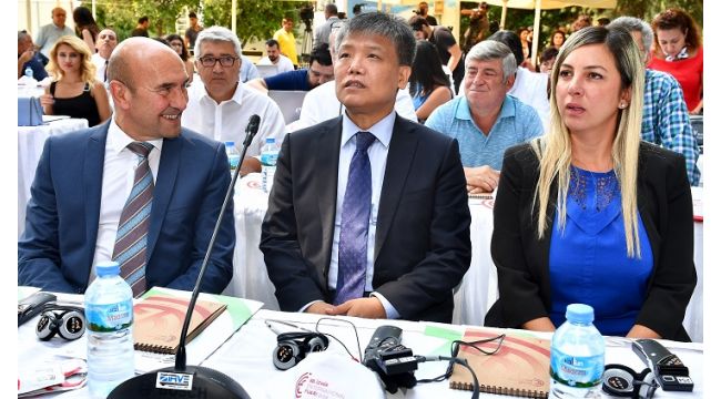 “6-15 Eylül arasında çok yoğun geçecek günler yaşayacağız” diyen İzmir Büyükşehir Belediye Başkanı Tunç Soyer, “Bir anlamda Türkiye’nin nabzı burada atacak. Dakikası boş geçmeyecek. Sahnelerde, salonlarda, açık alanlarda gerçekleşecek kültürel sanatsal etkinlikler dışında çok önemli bir ticari zemin de oluşturacak. İş görüşmeleri yapılacak. Çin ile gerçekleşecek bir buluşma yapacağız. Çin, dünyanın en hızlı büyüyen ve önderlik üstlenen ülkesi belki de. Kara, hava ve deniz demiryolları üzerinden İpek Yolu’nun yeniden inşası önümüzdeki yıllara damga vuracak çok önemli bir gelişme. İzmir, ‘Bir Kuşak Bir Yol” projesinin en büyük duraklarından biri olmaya taliptir. İzmir, Akdeniz çanağı ve Doğu arasında kalp vazifesi görecektir. Doğu’nun değerlerini Batı’ya, Batı’nın değerlerini Doğu’ya taşıyacaktır. Bugün miladı olacak buluşma Çin ve Türkiye açısından kardeş kentler açısından da çok anlamlı bir buluşmadır” dedi.