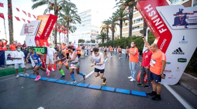 İzmir Büyükşehir Belediyesi'nin geleneksel olarak düzenlediği 9 Eylül Uluslararası İzmir Yarı Maratonu, bu yıl koronavirüs pandemisi nedeniyle pandemi önlemleriyle koşuldu. Pandemi kuralları altındaki yarışa katılan 350 sporcu İzmir'in kurtuluş coşkusuna ortak oldu. İzmir Büyükşehir Belediye Başkanı Tunç Soyer de 35001 numaralı forma ile 21 kilometre 97 metrelik parkuru koşarak tamamladı. Bu yıl 8'inci kez koşulup dünyayı sarsan küresel salgının ardından Türkiye'de düzenlenen ilk uzun yol koşusunda maske, mesafe ve hijyen kuralları titizlikle uygulandı. Dünya Sağlı Örgütü (DSÖ) ve Türkiye Atletizm Federasyonu'nun önerdiği kurallar çerçevesinde 500 kişi ile sınırlandıran yarışa 350 sporcu alındı. Cumhuriyet Meydanı ile İnciraltı arasındaki 21 kilometre 97 metrelik parkurda koşulan yarışı İzmir Büyükşehir Belediyesi Başkanı Tunç Soyer başlattı. Sporcular yarış öncesi kendilerine ayrılan alanda aralarında 1.5 metrelik mesafe bulunacak şekilde ısınırken yan yana dört sporcu start koridoruna girip arka arkaya 10'ar saniye ara ile yarışa başladı. Başkan Tunç Soyer startı verdikten hemen sonra yarışa katıldı. Meydandan koşuya başlayan atletler Mustafa Kemal Sahil Bulvarı üzerinden İnciraltı'na ulaştıktan sonra dönerek yeniden Cumhuriyet Meydanı'na vardı. İzmirliler maratona katılan sporcuları yarış güzergahı boyunca alkışlayarak destekledi. Parkuru tamamlayan Başkan Soyer koşunun ardından yarışta dereceye girenlerine madalyalarını verdi.ERKEKLERDE GELAW ŞAMPİYON9 Eylül Uluslararası İzmir Yarı Maratonu'nda genel sıralama erkekler kategorisinde ipi göğüsleyen isim geçtiğimiz yıl olduğu gibi bu yıl da Etiyopyalı atlet Getaye Gelaw oldu. Milli atlet Sezgin Ataç ikinciliği, milli atlet Saffet Elkatmış da üçüncülüğü aldı. Genel sıralama kadınlar kategorisinde ise itirazlar nedeniyle dereceye girenler Türkiye Atletizm Federasyonu'nun değerlendirmesinin ardından açıklanacak. Yarışmada ayrıca Yarı Maraton Türk Sporcular ve Master Sporcular kategorilerinde de ödüller verildi. Dereceye giren atletlere toplam 95 bin 200 TL para ödülü verilirken, yarışa katılan ve parkuru tamamlayan tüm sporculara da madalya takıldı.SANAL KOŞU KULÜBÜ AÇILIYORİzmir Büyükşehir Beleriye Başkanı Tunç Soyer, ödül töreninde Türkiye'nin ilk sanal koşu kulübünü açacaklarını söyledi. Soyer, "Türkiye'nin ilk sanal tam maratonunu ve sanal 10 kilometre koşusunu 4 Ekim'de pandemi önlemleri sebebiyle limitli katılımla gerçekleşecek Maraton İzmir ile birlikte organize edeceğiz. Dünyanın her köşesinde İzmir Aşkı ile Maraton İzmir'i koşabileceğiz. Harika sürprizler tüm koşucuları ve sporseverleri heyecanlandıracak. İzmir sporcuları, maratonlarıyla bir dünya markası olacak. Bugün düzenlediğimiz yarı maraton, 4 Ekim'de düzenleyeceğimiz Maraton İzmir ile kentin bu alandaki markalaşma gücünü ortaya çıkarıyoruz" diye konuştu.