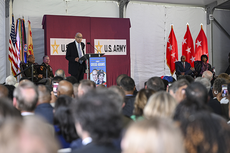 Gregg, tören sonunda Adams'ın yakınlarıyla birlikte tesisin yeni isminin yazdığı büstün önünde hatıra fotoğrafı çektirdi.ABD Ordusundan yapılan açıklamada, Fort Lee'nin, Konfederasyon liderlerinin adını taşıyan üsleri yeniden belirleme sürecinin bir parçası olarak seçilen 9 tesisin arasında olduğu belirtilmişti.