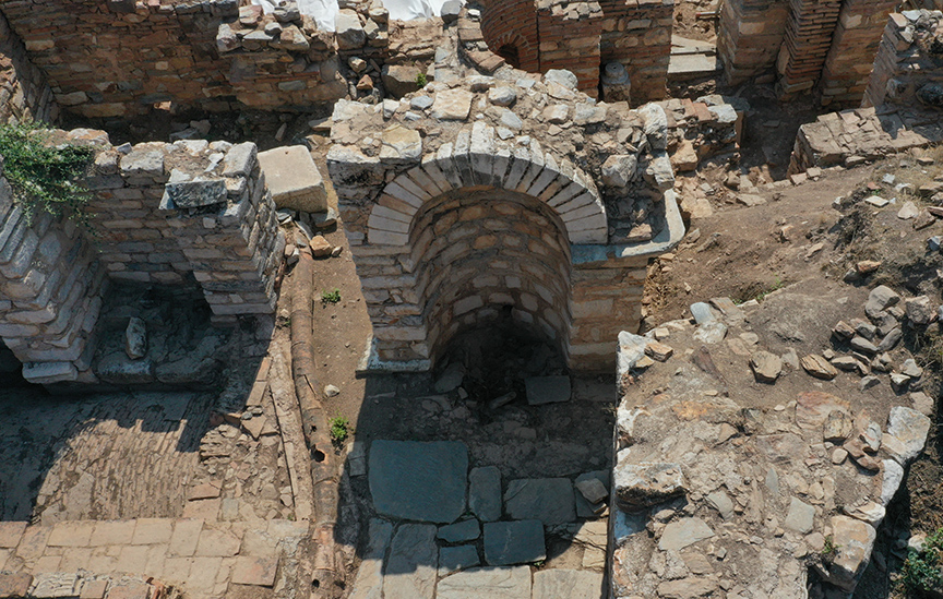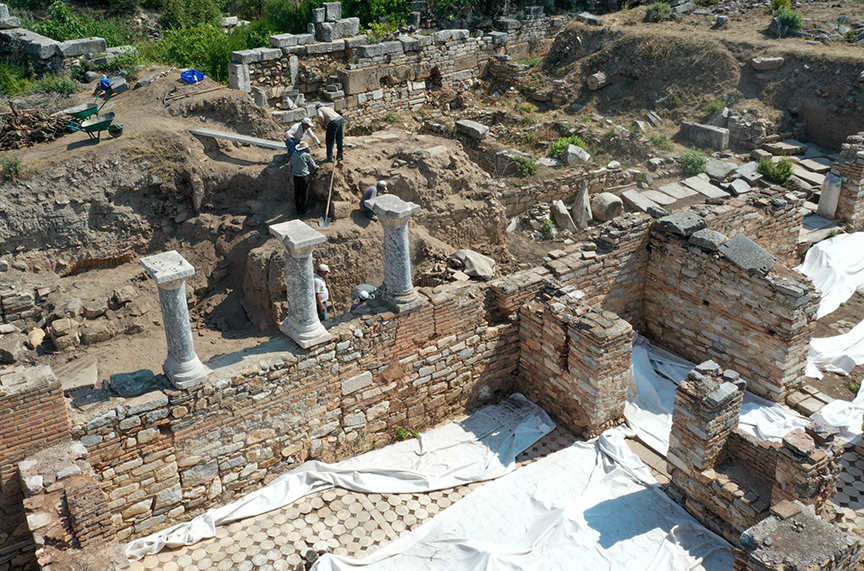 Erim tarafından 1986 yılında kazılan ve bir bölümü ortaya çıkarılan yapıya yeni bir arkeolojik yaklaşımla tekrar bakmaya başladıklarını belirten Smith, "Yeni metotlarla kazıyı tamamlamak, çevresini düzenlemek, belgelemesini yapmak, konservasyonunu tamamlamak, ziyaretçiye açık ve ulaşılır hale getirmek üzere bu yıl burada çalışıyoruz. Burada aslında büyük bir mahalleye bakıyoruz. Sadece bir ev değil. Sur duvarlarının hemen dibine inşa edilmiş, büyük bir depo yapısı ve onun yanında bir sokak ve burada büyük bir konak, köşk görüyoruz." dedi.