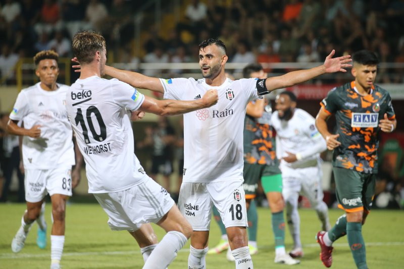 30. dakikada gelişen Beşiktaş atağında N'Koudou soldan ceza sahasına girerek yerden pasını çıkardı. Ghezzal, Alanyasporlu futbolcu Targhalline'nın müdahalesi sonrası yerde kaldı. Hakem Yasin Kol penaltı noktasını gösterdi.GOL! 31. dakikada topu başına geçen Ghezzal takımını 3 farklı öne geçirdi: 0-3KIRMIZI KART! 37. dakikada Emrecan Uzunhan'ın Zinedine Ferhat'a yaptığı mücadeleyi hakem Yasin Kol sarı kart olarak değerlendirdi. Sarı kartı bulunan Emrecan Uzunhan, gördüğü ikinci sarı karttan kırmızı kart ile oyundan atıldı.GOL! 45+3. dakikada Alanyaspor farkı ikiye indirdi. Beşiktaş ceza sahası yayı dışında Fernandes'in müdahalesi sonrası Targhalline yer kaldı. Faul sonrası topun başına geçen Efkan Bekiroğlu'nun sert vuruşunda meşin yuvarlak ağlarla buluştu: 1-3Karşılaşmanın ilk yarısını Beşiktaş 3-1 önde tamamladı.80. dakikada sol kanattan Oğuz Aydın arka direğe ortaladığı topa Efkan Bekiroğlu kafayla vurdu. Beşiktaş defansı topu kale dibinden uzaklaştırdı.GOL! 81. dakikada Alanyaspor farkı ikiye indirdi. Oğuz Aydın'ın sol kanttan ceza sahası köşe yakınında içeriye gönderdiği topa Saiss'in ters kafa vuruşuyla meşin yuvarlak ağlara gitti: 2-3.87. dakikada sağ kanattan Alanyasporlu Candeias'ın ceza sahasına gönderdiği uzun topa Erencan Yardımcı kafayla vurdu. Top yandan dışarı çıktı.