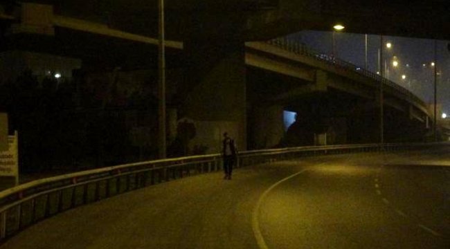 İZMİR'in Konak ilçesinde, kısıtlamayı ihlal eden alkollü kişi, araçların 70-80 kilometre hızla seyrettiği yola çıkarak trafiği tehlikeye düşürdü.?Konak ilçesi Altınyol mevkiinde saat 01.00 sıralarında sokağa çıkma yasağını ihlal eden alkollü kişi, araçların 70-80 kilometre hızla gittiği yola çıktı. Bu sırada araçlarıyla yoldan geçen kısıtlamadan muaf kişiler, bu kişiyi son anda fark etti. Alkolün de etkisiyle bu kişi, yol kenarında bulanan dubaları yola atarak trafiği tehlikeye attı. Vatandaşlar polise ihbarda bulunurken, bu kişi, bir süre sonra bölgeden uzaklaştı.