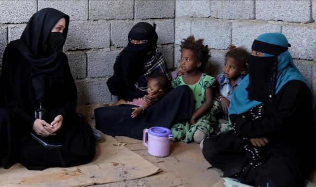 Birleşmiş Milletler Mülteciler Yüksek Komiserliğinin (UNHCR) Yemen ofisinden yapılan yazılı açıklamaya göre, ülkedeki ilk durağı Lahic kentindeki bir sığınmacı kampı olan Angelina Jolie, geçimlerini sağlamak için mücadele veren yerlerinden edilmiş Yemenli kadınlarla sohbet etti.UNHCR açıklamasında, Lahic kentinde çatışmalardan kaçmak için evlerini terk ederek yine kentin başka bölgelerine sığınmak zorunda kalan 35 ailenin şu an oldukça zor şartlar altında yaşam mücadelesi verdiği aktarıldı.Birleşmiş Milletler İyi Niyet Elçisi ve aktris Angelina Jolie, Yemen'deki çatışmaların neden olduğu insani felakete dikkati çekmek için dün bu ülkeye gelmişti.Jolie, Instagram hesabından yaptığı paylaşımda, "Ukrayna'daki vahşete tanık olmaya, çatışmaya son verilmesi ve insani yardımların ulaşması çağrısında bulunmaya devam ederken, barışa umutsuzca ihtiyaç duyan bu insanlara destek için Yemen'deyim." ifadelerini kullanmıştı.