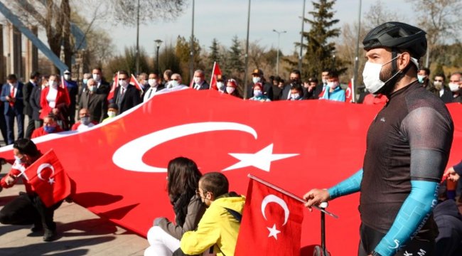 - Anıtkabir'de dalgalanan bayrak Mehmet Akif Ersoy'un evinde ANKARA - İstiklal Marşı'nın kabulünün 100. yılı nedeniyle Ankara Kent Konseyi Bisiklet Meclisi ve Polatlı Belediyesi Tarihi Alanlar Tanıtım Merkezi, Başkent'te bisiklet turu düzenledi. Gönüllü bisikletçiler Anıtkabir'de dalgalanan Türk Bayrağı'nı teslim alarak, Mehmet Akif Ersoy'un İstiklal Marşı'nı yazdığı Taceddin Dergahı'na taşıdılar. Ankara Kent Konseyi (AKK), İstiklal Marşı'nın kabulünün 100. yılı anma etkinlikleri kapsamında bisiklet turu düzenledi. AKK Bisiklet Meclisi gönüllüleri ile Polatlı Belediyesi Tarihi Alanlar Tanıtım Merkezi iş birliği ile gerçekleştirilen bisiklet turunda Anıtkabir'de dalgalanan Türk Bayrağı, Mehmet Akif Ersoy'un İstiklal Marşı'nı yazdığı Taceddin Dergahı'nda sergilenmek üzere Altındağ Hamamönü'ne taşındı. Gönüllü bisikletçiler katıldı AKK Bisiklet Meclisi ve Polatlı Belediyesi Tarihi Alanlar Tanıtım Merkezi tarafından organize edilen bisiklet turuna, 50'ye yakın bisikletçi katıldı. Gönüllü bisikletçiler teslim aldıkları Türk Bayrağı'nı, Hamamönü'nde yer alan Taceddin Dergahı'na ulaştırdı. Taceddin Dergahı'nda gerçekleştirilen anma programına katılan Polatlı Belediye Başkanı Mürsel Yıldızkaya da Türk Bayrağı'nı Ankara Vakıflar Bölge Müdürü Ferhat Türkoğlu'na teslim etti. Türk Bayrağı 23 Nisan'a kadar Taceddin Dergahı'nda sergilenecek Ankara Kent Konseyi Yürütme Kurulu Başkanı Halil İbrahim Yılmaz, Ankara İl Kültür Turizm Müdürü Ali Ayvazoğlu, Ankara Kent Konseyi Yürütme Kurulu üyesi Dr. Süleyman Basa, AKK Bisiklet Meclisi Başkanı Kadir İspirli'nin de yer aldığı anma etkinliğine Başkentliler de yoğun ilgi gösterdi. "İstiklal Bayrağı Zafer Yolunda" sloganıyla düzenlenen bisiklet turunda pedal çeviren bisikletçilerin Anıtkabir'den teslim aldığı Türk bayrağı önce 23 Nisan 2021 tarihine kadar Taceddin Dergahı'nda sergilenecek daha sonra da Milli Mücadele savaşının yaşandığı farklı illere götürülecek. Cumhuriyetin kuruluşunun 100. yılına özel kutlamalar yapılacak Tüm yurdu dolaşacak olan Türk Bayrağı, Cumhuriyetin kuruluşunun 100. yılında 29 Ekim 2023'te ise Cumhuriyetin ilan edildiği Birinci Meclis'te göndere çekilecek. Sakarya Meydan Muharebesi'nin 100. yılı dolayısıyla birçok etkinlik gerçekleştireceklerinin altını çizen Polatlı Belediye Başkanı Yıldızkaya, "Bayrağımız Ankara'dan İzmir'e kadar Milli Mücadele'nin yaşandığı bütün toprakları tek tek gezecek. Duatepe, Kartaltepe ve Kocatepe'de yeniden onurla ve gururla dalgalanacak" ifadelerini kullandı. İstiklal Marşı'nın ulusal kurtuluş mücadelesi ve gelecek nesiller için önemine dikkat çeken AKK Yürütme Kurulu Başkanı Halil İbrahim Yılmaz da Taceddin Dergahı'nda yaptığı konuşmada, "Bundan 100 yıl önce Milli Mücadele'nin zırhının hazırlandığı, duygularımızın metne döküldüğü, Mehmet Akif Ersoy'un insanlık tarihine etki oluşturacak, gelecek bin yıllarda da etkisini sürdürecek manifestoyu yazdığı bu binanın önünde bulunmanın huzurunu ve heyecanını yaşıyorum" değerlendirmesinde bulundu. :