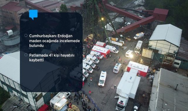 Türkiye Taşkömürü Kurumu (TTK) Amasra Müessese Müdürlüğüne bağlı maden ocağında dün saat 18.15 sıralarında -300 kotunda nedeni belli olmayan kısmi bir patlama meydana geldi.Patlamada 41 kişi hayatını kaybederken, maden ocağındaki arama kurtarma çalışmaları tamamlandı.Türkiye Taşkömürü Kurumu (TTK) Amasra Müessesesine ait maden ocağının içerisinde ve çevresinde, TTK tahlisiye, AFAD, UMKE, Türk Kızılay, polis, jandarma, sağlık ve gönüllülerden oluşan ekipler, güvenlik önlemlerini alarak çalışma yürüttü.Bölgede konuşlandırılan AFAD'ın mobil koordinasyon tırındaki kriz masasında bilgiler değerlendiriliyor.TTK'nin Zonguldak'ta konuşlu tahliye ekibi, 8 takım olarak maden ocağında arama kurtarma çalışması tamamlandı.