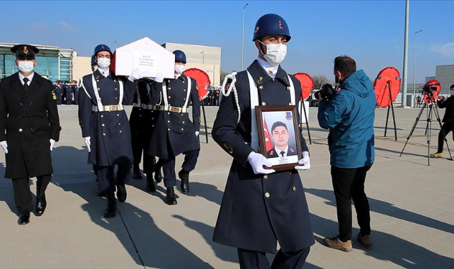 Fırat Üniversitesi Hastanesinden cenaze nakil aracıyla törenin düzenlendiği Elazığ Havalimanı'na getirilen şehit Mutlu'nun (32) Türk bayrağına sarılı naaşı, meslektaşlarının omuzlarında katafalka konuldu.Saygı duruşunda bulunulan törende, şehidin öz geçmişi okundu.