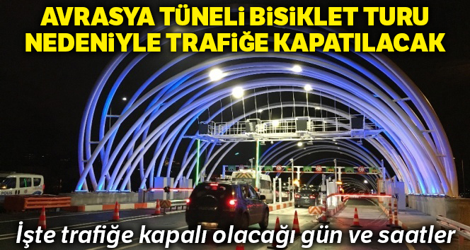Asya ile Avrupa yakasını deniz tabanının altından karayolu ile birbirine bağlayan Avrasya Tüneli, 21 Nisan Pazar günü Cumhurbaşkanlığı Türkiye Bisiklet Turu dolayısıyla trafiğe kapatılacak. Tünel,14.00 ile 16.15 saatleri arası Asya-Avrupa yönünde, 15.00 ve 16.15 saatleri arasında da Avrupa- Asya yönünde araç trafiğine kapatılacak. Zöhre Alagöz