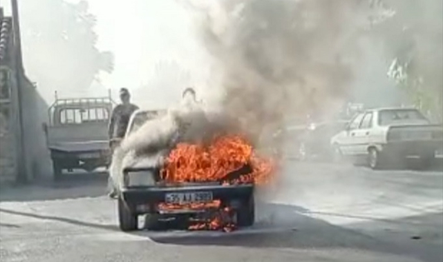 Yenicami Mahallesi Karayalçın Caddesi istikametine seyreden Engin T'nin kullandığı 35 AJ 2989 plakalı otomobilin motor kısmında yangın çıktı.