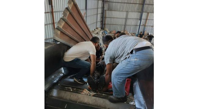İZMİR (İHA) - İzmir’in Gaziemir ilçesinde, bacağı çöp öğütücü makineye sıkışan işçiyi itfaiye ekipleri kurtardı.