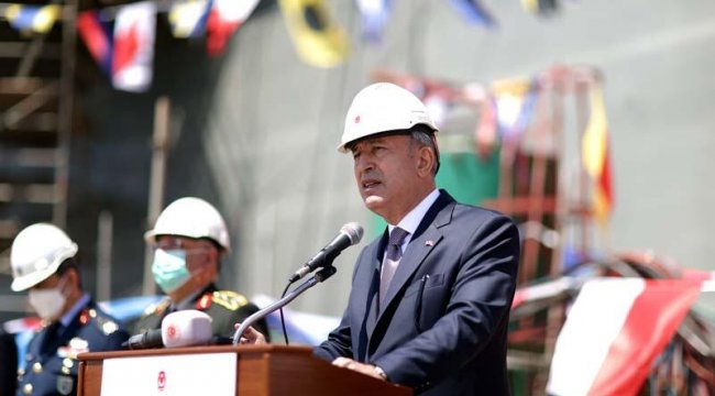 Akar, beraberinde Genelkurmay Başkanı Orgeneral Yaşar Güler, Kara Kuvvetleri Komutanı Orgeneral Ümit Dündar, Deniz Kuvvetleri Komutanı Oramiral Adnan Özbal, Hava Kuvvetleri Komutanı Orgeneral Hasan Küçükakyüz ve Bakan Yardımcısı Muhsin Dere ile İstanbul Sedef Tersanesi’nde inşası devam eden TCG Anadolu Çok Maksatlı Amfibi Hücum Gemisi'nde incelemelerde bulundu. Tersane yetkililerinden çalışmalara ilişkin brifing alan Akar ve TSK komuta kademesi, TCG Anadolu inşasında görevli personelle bir araya geldi. "Büyük işler yaptığınıza burada bir kere daha tanık olduk." ifadesiyle çalışanları tebrik eden Akar, son dönemde yerli ve milli savunma sanayisinde atılan önemli adımlara dikkati çekti. Cumhurbaşkanı Recep Tayyip Erdoğan’ın liderliğinde bu konuda önemli mesafeler kat edildiğini vurgulayan Akar, gelecek dönemde savunma sanayi alanında ülkenin birliği, beraberliği ve güvenliği için gereken adımları atmaya devam edeceklerini bildirdi. Yerli ve milli savunma sanayinin çok ciddi sistemleri, alt sistemleri üretir hale geldiğini aktaran Akar, "Bu, ülkemiz için büyük bir gurur ve onur kaynağıdır. İnşallah önümüzdeki dönemde bu çok daha ileri düzeylere gidecek." diye konuştu. Akar, savunma sanayisinde her türlü hafif silah, top, helikopter, gemi, , S, elektronik malzeme ihraç eder seviyeye gelindiğini belirterek, “Sayın Cumhurbaşkanımızın liderliğiyle, teşvikiyle bu noktaya gelen savunma sanayisinde bundan sonra çok daha önemli işler ve çetin bir yol olduğunun farkındayız. Çalışarak bu güçlüklerin üstesinden geleceğimizden eminiz ve buna inanıyoruz.” ifadelerini kullandı. Türk Silahlı Kuvvetlerinin terör ve teröristle mücadelesini büyük fedakarlık ve kararlılıkla sürdürdüğünü dile getiren Akar, "Mehmetçik, şanlı tarihine yaraşır şekilde büyük başarılar sağlamaktadır, ülkesine ve milletine olan borcunu ödemekte, yerine getirmektedir." dedi. Terörle mücadelenin yurt içi ve sınır ötesinde başarıyla devam ettiğini bildiren Akar, "Bu mücadelede bizim tek hedefimiz teröristler. İçeride ve dışarıda bazı fitne ve fesat yuvaları Türk Silahlı Kuvvetlerinin oradaki ‘bazı etnik, dini gruplara karşı tavrı olduğu’ yönünde fitne ve fesat yaymaya çalışıyorlar. Bunlar kesinlikle doğru değildir. Bunlar yalandır, gerçekleri yansıtmamaktadır. Yurt içinde ve sınır ötesinde bizim tek hedefimiz teröristlerdir." açıklamasında bulundu. Akar, Mehmetçiğin teröre karşı büyük mücadele verdiğine işaret ederek, "Sadece 1 Ocak’tan bugüne kadar 1107 terörist etkisiz hale getirildi. 23 Nisan’da başlatılan Pençe Şimşek ve Pençe Yıldırım harekatlarında ise toplam 124 terörist etkisiz hale getirildi. Teröristlerin inleri başlarına yıkıldı, yıkılmaya devam ediliyor. Oradaki bütün mağaralar, dereler, tepeler Mehmetçik tarafından tek tek kontrol edilmeye devam ediliyor.” şeklinde konuştu. YPG ve PKK arasında fark olmadığını da dile getiren Akar, şunları söyledi: "Bu durum, örgütün sözde elebaşlarından Sofi Nurettin'in etkisiz hale getirildiği son operasyonlarda bir kez daha görüldü. Daha dün YPG'nin başı olarak Suriye'de görev yaparken, bu terörist Mehmetçiğe nerede yakalandı? Irak'ın kuzeyinde, Gara'da yakalandı. Dolayısıyla bunların, YPG'nin, PKK'nın birbirinden farkı yok. Bunların farklı olduğunu, YPG’nin başka bir şey olduğunu söyleyenler aklımızla alay ediyorlar. Akıllarını başlarına toplasınlar. Bu kadar açık bir konunun tartışma konusu haline getirilmesi ahlaki değildir. Bu konuda bizim kararımız ortadadır. Bunu da herkesin görmesi lazım.” "MİLLETİMİZİN HAKKINI ÇİĞNETMEYECEĞİZ" Ege, Akdeniz ve Kıbrıs'ta yaşanan bazı sorunlara dikkati çeken Akar, "Biz bu sorunların uluslararası hukuk çerçevesinde, iyi komşuluk ilişkileri içinde, Yunan komşularımızla beraber konuşarak, görüşerek barış içinde çözülmesinden yanayız." değerlendirmesinde bulundu. Akar, Yunanistan’ın bugüne kadar yapılan çalışmalara yönelik provokasyonlarına devam ettiğini belirterek, şöyle konuştu: "Yunan komşularımız eylem ve söylemleriyle bu yapılan çalışmaları, olumlu gidişatı provoke, sabote etmek için ellerinden gelen gayreti gösteriyorlar. Bu yolun çıkar yol olmadığını kendilerine hatırlatmak istiyorum. Bu söylemlerle, tahriklerle, provokasyonlarla bir yere varmalarının imkanı yok. Bizim istediğimiz uluslararası hukuk. Siz uluslararası anlaşmalarda olan maddeleri nasıl inkar edersiniz? Biz uluslararası hukuktan, iyi komşuluk ilişkilerinden yanayız fakat hiçbir zaman da ülkemizin, milletimizin hakkını çiğnetmeyeceğiz, hiçbir zaman bir oldubittiye müsaade etmeyeceğiz. Bunu herkesin bilmesi lazım." “YUNAN KOMŞULARIMIZ KENDİLERİNE GÜVENSİN, HAMİLERİNE DEĞİL” Son dönemde Yunanistan’da sivil, asker bazı kişilerin tarihi hezeyanlarda bulunduğunu ifade eden Akar, şunları kaydetti: "Türk tarihi çok açıktır, berraktır, şeffaftır. Bu milletin yüzü, alnı aktır. Bizim tarihimizde hiçbir şekilde bir soykırım söz konusu değildir. Dün Ermenistan, bugün Yunanistan kendilerine göre birtakım iddialarda bulunuyorlar. Bu tarihi tersten okumak demektir, bu hezeyandır. Bu doğru değildir, yalandır, yanlıştır ve müspet gidişi, iş birliğini, sorunların barışçıl yollarla çözümünü tahriptir, buna karşı bir harekettir. Dolayısıyla bu söylemlerinde, eylemlerinde Yunan komşularımıza bir daha doğruları ve gerçekleri konuşmaları konusunu kendilerine hatırlatıyorum. Türkiye'ye 'yayılmacı' diyenler tarihe baksınlar. 1821 ve günümüze kadar olan gelişmelere, haritaya baksınlar. Orada kimin yayılmacı olduğu, kimin nasıl yayıldığı çok açık ve net şekilde görülmektedir. Bu gerçekler ortada dururken Türkiye'yi y