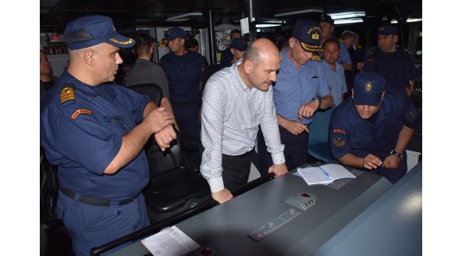 Çeşme programı kapsamında Kaan 29 sınıfı Sahil Güvenlik Botu TCSG 107 ile denize açılan İçişleri Bakanı Süleyman Soylu, incelemerde bulundu. Ardından Çeşme Limanı'ndan Sahil Güvenlik Komutanlığına ait arama kurtarma gemisi TCSG Dost’ a binen Soylu, saat 24.00 sıralarında gece seyrine çıktı. İlk olarak geminin kaptan köşküne çıkan Soylu, daha sonra Sahil Güvenlik Komutanı Tuğamiral Ahmet Kendir ile birlikte geminin köprü üstü bölümü ve arama kurtarma harekat merkezine çıkarak düzensiz göçmen operasyonları ve çalışmalara yönelik bilgiler aldı.