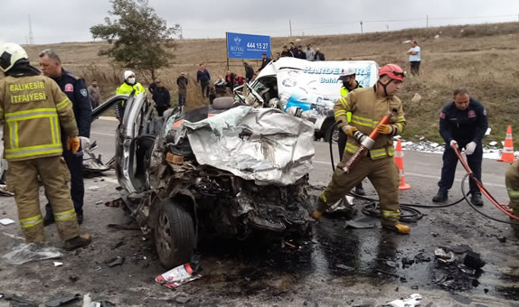 kaza sonrası adeta savaş alanına dönen yolda duran diğer araçlar polis, sağlık ve itfaiye ekiplerine durumu bildirdi. Kaza yerine çok sayıda ambulans sevk edildi. Kazada araçların içinde sıkıştıkları belirlenen Abdullah T. ve İbrahim Ç. adlı vatandaşlar hayatlarını kaybetti. Vefat eden vatandaşların cansız bedenleri bandırma Eğitim ve Araştırma Hastanesi Morgu’na kaldırılırken, kaza sonrası trafiğe kapanan yol nedeniyle uzun araç kuyrukları meydana geldi. Yol temizlendikten sonra trafiğe yeniden açıldı. İHA