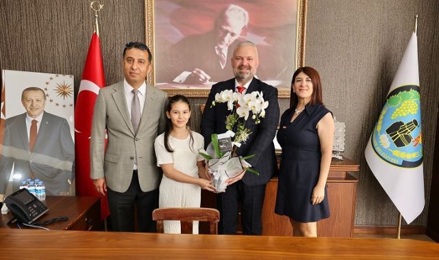 Koltuğunu devreden Başkan Aydın Pehlivan, Aybüke Kara’ya, “Kader gayrete aşıktır. Sizler çok çalışarak, bu ülkenin yarınları olacaksınız. Bizlerin ortaya koyduğu her hizmeti, ülkemize ve insanlığa daha da geliştirerek yayacaksınız. İstiklalimizin kurtarıcısı ve Cumhuriyetimizin Kurucusu Ulu Önder Gazi Mustafa Kemal Atatürk nasıl ki çocukların önemini ve yarınları görerek, çalışmalarını bu doğrultuda yaptıysa, biz de en büyük yatırımımızı çocuklarımız ve gençlerimiz için yapıyoruz. Eğitim desteklerimiz, kütüphanelerimiz, çocuk köyümüz ve nice hizmetimizle, yarınımız olan evlatlarımızın hizmetindeyiz” dedi.
