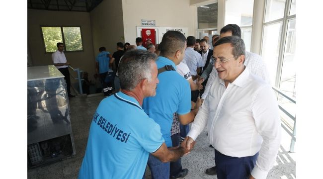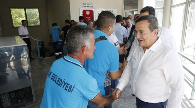 Konak Belediye Başkanı Abdül Batur, CHP Konak İlçe Başkanı Çağrı Gruşçu, sendika temsilcileri, belediye bürokratları ile birlikte, Gediz’deki Fen İşleri Şantiyesi, Ulaşım Hizmetleri Müdürlüğü, Temizlik İşleri Müdürlüğü ve Kadifekale’deki Park ve Bahçeler Müdürlüğüne ait fidanlığı ziyaret ederek personelin bayramını kutladı. Bayramlaşma sırasında, son zamanlarda işçiyi rahatsız eden kıdem tazminatının fona devredilmesi konusuna değinerek, her zaman işçinin emekçinin yanında yer aldıklarını kaydeden başkan Batur, "Birlikte olmak ve birbirimize destek olmak zorundayız. Başarının tek formülü budur" dedi. Batur, “Birlikte Konak diyerek bir yola çıktık. Birbirimize inandık. Konak'a rekor bir oy alarak göreve geldik. Sizler bize inandınız, bizlerde size. Şimdi hareket zamanı, çalışma zamanı. Sizler çalıştıkça, görevlerinizi layıkıyla yaptıkça, başarıya ulaşabiliriz. Biz yöneticiyiz. Plan proje yaparız fakat bunu sahada uygulayacak olan sizler canla başla çalışmazsa, yapılan planın ve projenin hiç bir önemi kalmaz. Başkanı üst noktalara çıkaran çalışanlarıdır. Sizin değerli emekleri ile bu güzel işler ortaya çıkıyor. O yüzden bir bütünün parçası olan bizler her zaman bir arada hareket ederek birbirimize destek olursak başarıya ulaşabiliriz. Son günlerde yeniden seslendirilen işçinin kıdem tazminatı konusunda eğer bunu elinizden alacak bir çalışma ortaya çıkarsa, belediye başkanı olarak ben, meclis üyelerimizle, sendika temsilcilerimizle birlikte her zaman sizlerin yanınızda mücadele etmeye hazırız. Sizlerin haklarının elinizden alınmaması için elimizden gelen tüm çabayı sarf edeceğiz" diye konuştu.