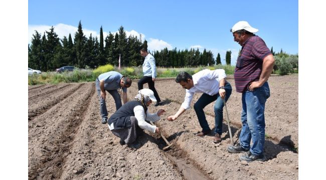 Dikili Belediye Başkanı Adil Kırgöz, çat kapı ziyaretleri kapsamında tarlada üreticiyle bir araya geldi.