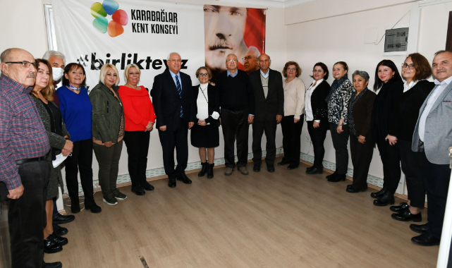 Karabağlar Belediye Başkanı Muhittin Selvitopu, Karabağlar Kent Konseyi Başkanlığı'na seçilen Alev Ağrı ve Yürütme Kurulu üyelerini ziyaret etti