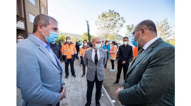 Başkan Soyer, “Biz dört dörtlük bir yer yapıyoruz. Her türlü ihtiyacı karşılanmış şekilde binaları hazırlıyoruz ve yurttaşlarımızı bekliyoruz. Soğukta, emlakçı ve komisyoncuyla uğraşmadan, bir yıllık kira bedelini düşünmeden, huzurla yaşayacakları bir mekan hazırlıyoruz. Depremzedeleri de bu konutlara davet ediyoruz” dedi.