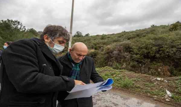 İzmir Büyükşehir Belediye Başkanı Tunç Soyer, yağışların etkisiyle Narlıdere’de istinat duvarı çöken sitenin bulunduğu bölgeyi ziyaret etti