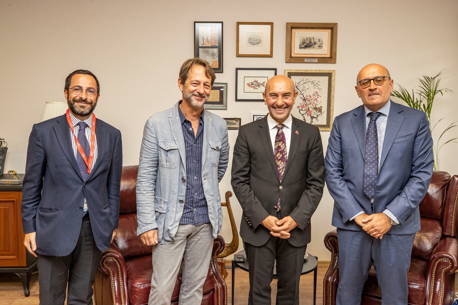 Soyer, ziyaretler sonrasında Roma Belediye Başkanı Diplomatik Danışmanı Luca Trifone’yi de ağırladı. Görüşmelerde ilişkilerin güçlendirilmesi için fikir birliğine varılırken karşılıklı hediyeler verildi.