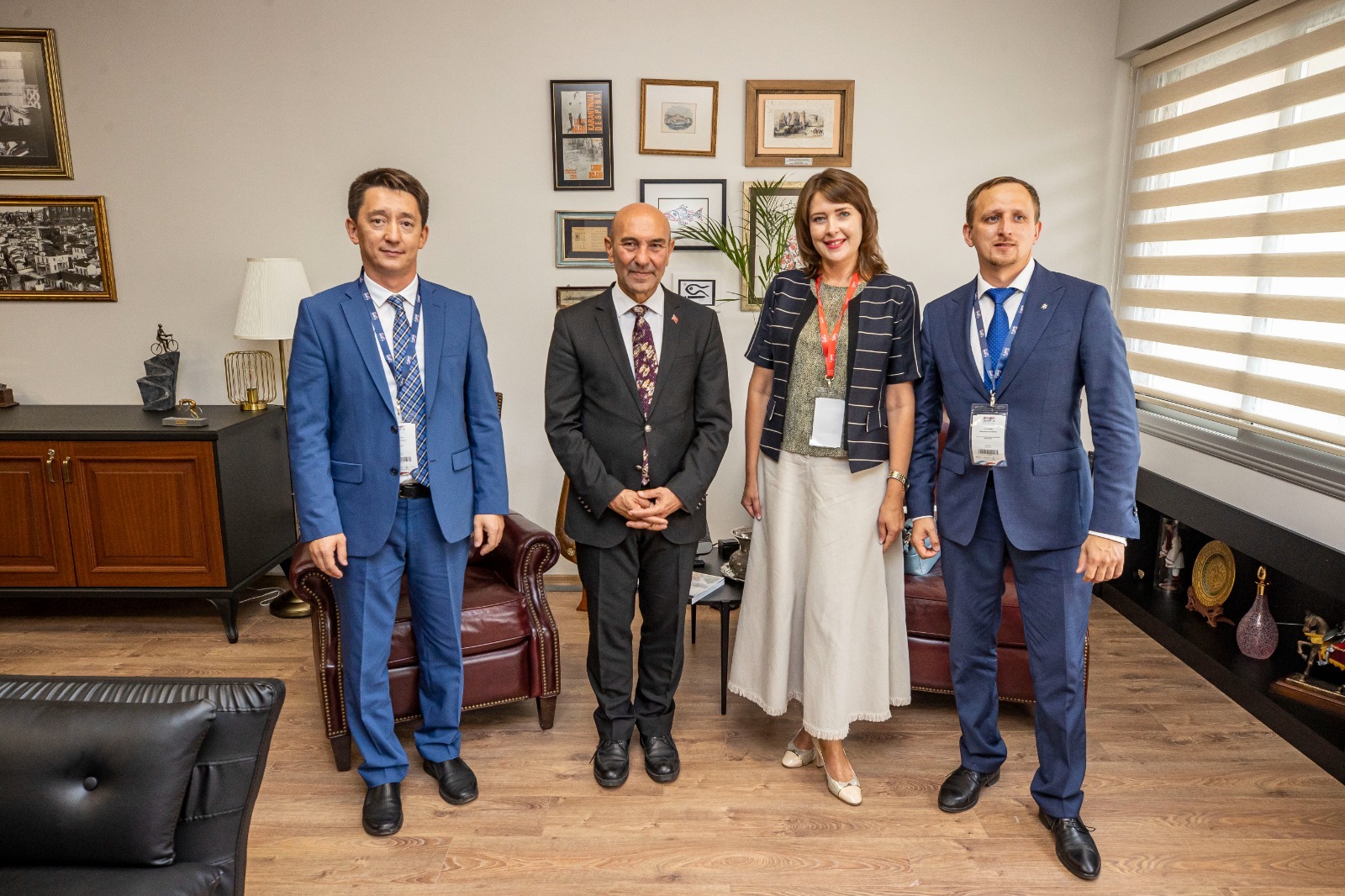 İzmir Büyükşehir Belediye Başkanı Tunç Soyer, Dünya Belediyeler Birliği (UCLG) Kültür Zirvesi için kente gelen konuklarla bir araya geldi. Kültürpark'ta 1 Nolu Hol'de bulunan başkanlık makamında konuklarını ağırlayan Başkan Soyer, UCLG Eurasia Heyeti ile de bir araya geldi.