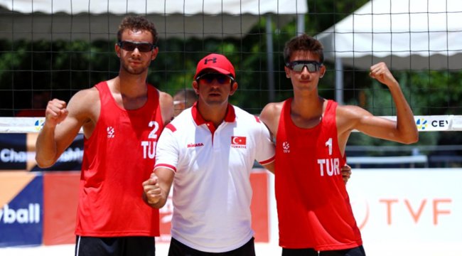 İzmir Büyükşehir Belediyesi'nin ev sahipliğindeki U20 Plaj Voleybolu Avrupa Şampiyonası'nda ikinci maçını da kazanan Batuhan Kuru-Necmi Ayberk Güllük ikilisi, Avrupa'nın en iyi sporcularının mücadele ettiği dev organizasyonda gruptan çıkmayı garantiledi.