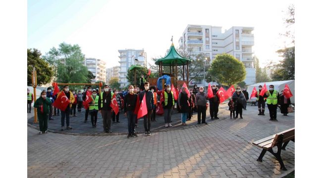 Ulu Önder Mustafa Kemal Atatürk'ün aramızdan ayrılışının 82'nci yıl dönümünde tüm Türkiye’de olduğu gibi Bayraklı'da da anıldı. Depremzede vatandaşlar saatleri 9’u 5 geçtiğinde çadırkentlerde ellerinde Türk Bayraklarıyla saygı duruşunda bulundu.