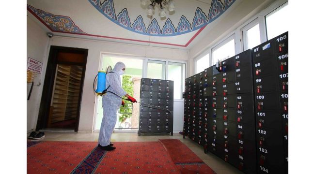 Bayraklı Belediyesi Temizlik İşleri Müdürlüğü ekipleri, camilerin halı, kapı ve duvarları ile imam ve müezzinin kullandığı alanlar, tesbihler, ayakkabılıklar, musluklar, tuvaletler, banklar gibi temasın olabileceği her yeri en ince ayrıntısına kadar ilaçladı.