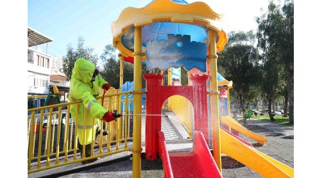 Bayraklı Belediyesi, tüm dünyayı sarsan koronavirüsün Türkiye’de de görülmesi üzerine ilçede temizlik seferberliği başlattı. Belediye ekipleri, tüm oyun parkları, okul ve ibadethaneler ile vatandaşların yoğun olarak bulunduğu noktaları baştan aşağı temizliyor. Bayraklı Belediye Başkanı Serdar Sandal, halk sağlığını korumak amacıyla önlemleri artırdıklarını belirterek, “Özellikle ortak kullanım alanlarına yönelik temizlik çalışmalarımız belirli aralıklarla sürecek” dedi.
