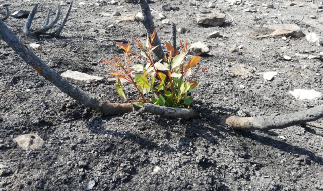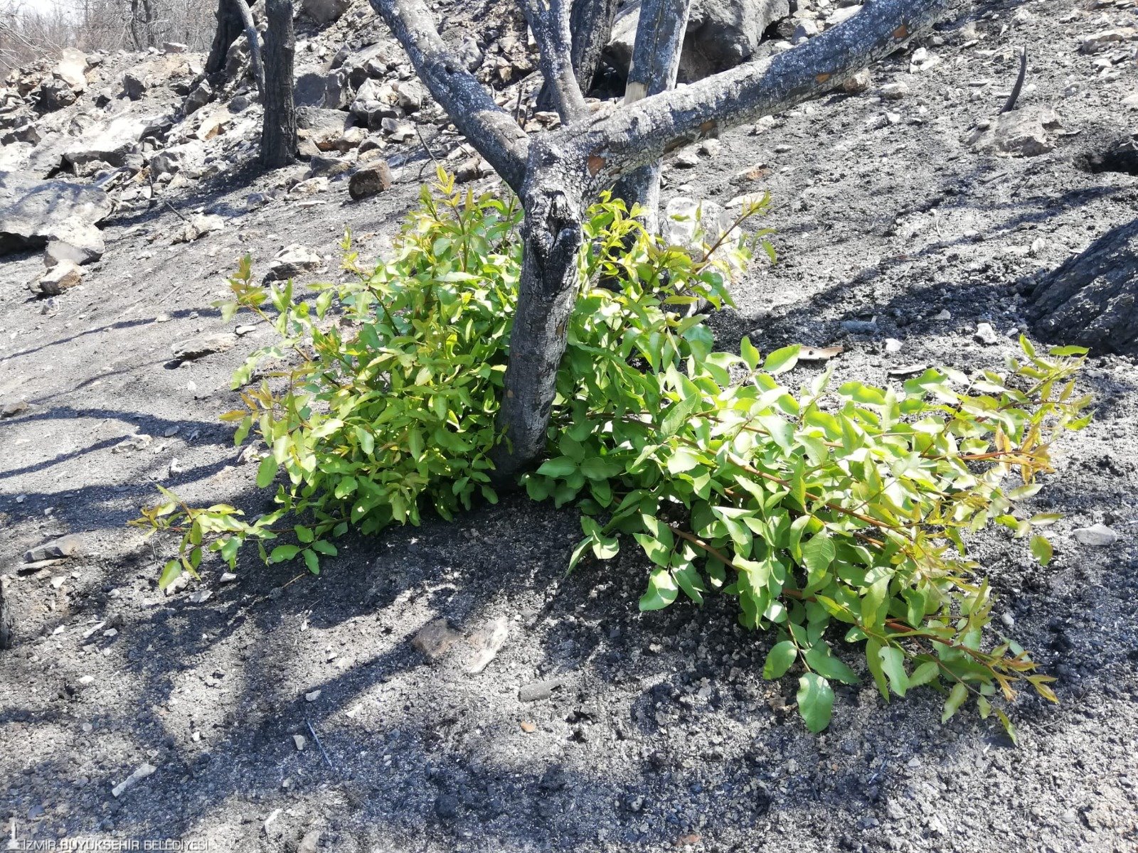 Yanmasının üzerinden henüz 1 ay 10 gün geçmesine rağmen Foça'daki yangın sahasında kermes meşesi, menengiç gibi maki elemanlarının sürgün verdiği, kızılçamların serotin kozalaklarının açıldığı gözlemlendi.