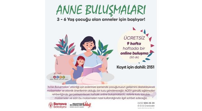 9 hafta boyunca, haftada bir gün ve 50 dakikalık oturumlar şeklinde on-line olarak gerçekleştirilecek etkinliğe katılmak isteyen annelerin Ocak Ayı sonuna kadar Bornova Belediyesi’nin 0232 999 29 29 numaralı santral numarasından dahili 2151’e kayıt yaptırması gerekiyor.