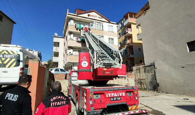 Kocaeli Gebze'de, boşanma aşamasında olduğu eşinin kendilerini eve kilitlediğini iddia eden D.D. ve 2 çocuğunu, itfaiye ekipleri merdivenle 4’üncü kattaki balkondan alarak çıkardı.