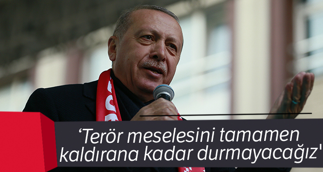 Cumhurbaşkanı Erdoğan terör operasyonlarına değinerek, “En son Kandil'de gerçekleştirdik. Bay Kemal orada terörist yok diyor. Lider kadronun en kafa adaları şu an ağır yaralı. Bay Kemal orada terörist yok diyor. Lider kadroyu en kafa adamları şu an ağır yaralı diğer dört tanesi gitti. Bu başarılı operasyonu kendi milli imkanlarımızla yürüttük. Bu milletin gündeminden terör meselesini tamamen kaldırana kadar durmayacağız. CHP'ye rağmen CHP'nin kandil güdümlü ittifak ortaklarına rağmen yapacağız. Bay Sezai kendisi Kürt de değil ne idüğü belirsiz. Diyor ki, ‘İstanbul'da üç 3 Kürt'e rağmen belediye başkanlığı yapamazsınız'. CHP'nin İstanbul Büyükşehir Belediye Başkan adayına diyor. Ne hallere kaldık” dedi.