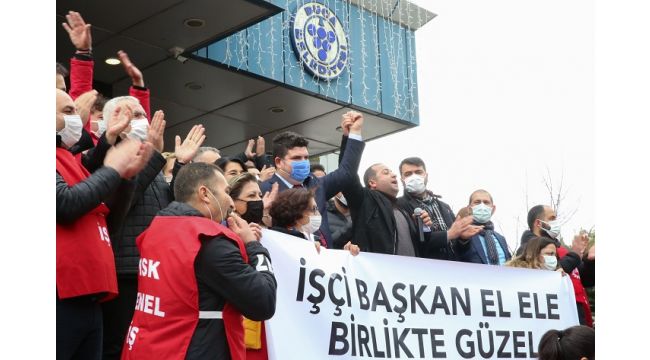Toplu İş Sözleşmesi’nin bilgilendirme toplantısı buca belediyesi Hizmet Binası önünde, bayram havasında gerçekleştirildi. Açıklamaya Buca Belediye Başkanı Av. Erhan Kılıç, DİSK Ege Bölge Temsilcisi Memiş Sarı, CHP Buca İlçe Başkanı Hacer Taş Gültepe, İYİ Parti Buca İlçe Başkanı Gamze Bilgen Torun, DİSK Genel İş 5 No’lu Şube Başkanı Ali Haydar Kara, Buca Belediyesi Meclis üyeleri ve yüzlerce belediye çalışanları katıldı. Alana, sahada görevli temizlik ve park işçileri sloganlarla, davul zurnayla girdi. İşçiler belediye önünde pankartlar açarak “İşçi dostu başkan Erhan Kılıç”, “Buca emeğin yanında”, “Emeğin kalesi Buca”, “İşçi başkan el ele birlikte güzel günlere” sloganları atıldı. Belediye önünde sosyal mesafe kurallarına dikkat edilerek halaylar çekildi, hep bir ağızdan devrim türküleri söylendi.