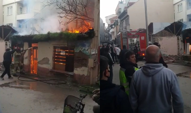 Bursa'da tek katlı metruk ev alevlere teslim oldu. O anlar kameraya yansıdı.