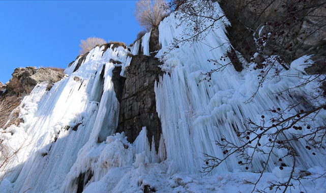 Aksaray'ın Güzelyurt ilçesi Ilısu köyünde 35 metre yüksekliğinde ve 40 metre genişliğindeki Gelinkayası Şelalesi, kışın da doğaseverleri misafir ediyor.Aksaray Afet ve Acil Durum Müdürlüğü (AFAD) tarafından 2021'de gerçekleştirilen proje ile buz ve şelale tırmanış alanı ilan edilen Gelinkayası, donmuş görüntüsüyle tırmanış tutkunlarının tercihleri arasında yer alıyor.AFAD İl Müdürlüğü dağcılık arama kurtarma ekipleri de buz tutan şelalede tırmanış gerçekleştirdi. AFAD gönüllüsü ve profesyonel dağcı İsmail Demirezen, gazetecilere, dik donmuş şelale tırmanışının belirli noktalarda yapıldığını söyledi.