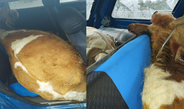 Çaldığı ineği otomobilin arka koltuğuna gizledi