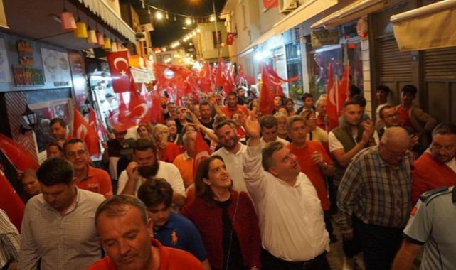 Çeşme Belediyesi tarafından Cumhuriyet’in 100’üncü yıl kutlamaları kapsamında düzenlenen yürüyüş Musalla Mahallesi 16 Eylül Parkı’ndan başladı. Binlerce vatandaş, ellerinde bayraklar ve meşalelerle Cumhuriyet Meydanı’na yürüdü. Çeşme Belediye Başkanı M. Ekrem Oran korteje eşi Nuriş Oran ve oğlu Nazım Çetin Oran ile birlikte katıldı. Meclis üyeleri ve muhtarlar da kortejde yer aldı. Yürüyüş boyunca bando eşliğinde marşlar çalındı. Çeşmeliler balkonlarından bayraklar sallayarak coşkuya ortak oldu.KENT BELLEĞİ MÜZESİ’NE GÖRKEMLİ AÇILIŞ