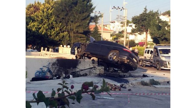 İZMİR (İHA) - İzmir Çeşme ilçesinin Çiftlik Mahallesi'nde, çevre yolunda süratten dolayı direksiyon hakimiyeti kaybolan lüks araç kazaya neden olurken, aracın sürat göstergesinin 220'de kilitli kalması dikkat çekti.