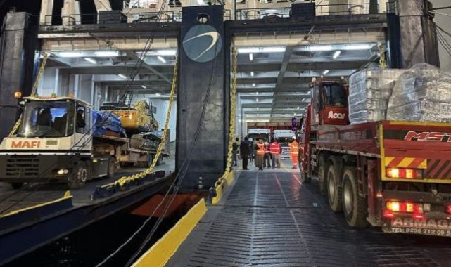 İzmir'den deprem bölgesine yapılan destek ve yardımlar kapsamda çeşitli kurumlarca organize edilen iş makineleri, inşaat malzemeleri, yakıt tankerleri, konteyner, gıda ve sağlık malzemelerini taşıyan araçlar Çeşme Ulusoy Limanı'na getirildi.Yetkililerle birlikte geminin son hazırlıklarını takip eden Çeşme Kaymakamı Mehmet Maraşlı, "Bu deprem, ülkemizin tarihinde yaşadığı en büyük felaketlerden biri. İzmir vilayetimizde Çeşme Limanımızda, Valiliğimiz, AFAD, Ulaştırma Bakanlığı, Denizcilik Genel Müdürlüğü, Deniz Ticaret Odası işbirliğinde yardım faaliyetleri Çeşme limanımızdan Ulusoy Gemisi ile beraber harekete geçecektir. Yükleme neredeyse tamamlanmak üzeredir. İnşallah oradaki vatandaşlarımıza en iyi şekilde yardımın ulaşacağını ümit ediyoruz. Allah yardımcımız olsun. Enkaz altında kalan vatandaşlarımızın da tez zamanda kurtulmasını ümit ediyoruz" diye konuştu.Araçlar görevlilerce "Ulusoy 5 Ro-Ro" gemisine yüklenerek hazırlıklar tamamlandı.Limandan hareket eden gemi, 40 saatte İskenderun Limanı'na ulaşacak.