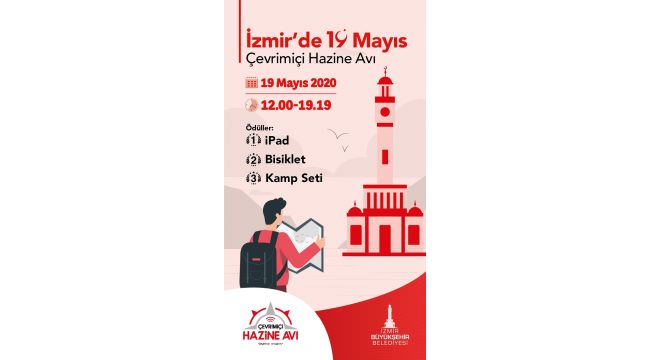 İzmir Büyükşehir Belediyesi korona günlerinde 19 Mayıs coşkusunu evlere taşıyor. Dijital platformlardan yayınlanacak pek çok etkinliğin yanı sıra Çevrimiçi hazine avı adlı bir yarışma da düzenliyor. 7 saat 19 dakikalık Çevrimiçi Hazine Avı, öncelikle gençlerin olmak üzere tüm İzmirlilerin evlerinde keyifli bir bayram geçirmesini amaçlıyor. Yarışma resim, video, metin gibi çeşitli dosya formatlarıyla hazırlanmış şifreleri çözme ve her şifreyi çözdükten sonra verilecek görevi yerine getirme esasına dayanıyor. Yarışmada yaş sınırlaması bulunmuyor.