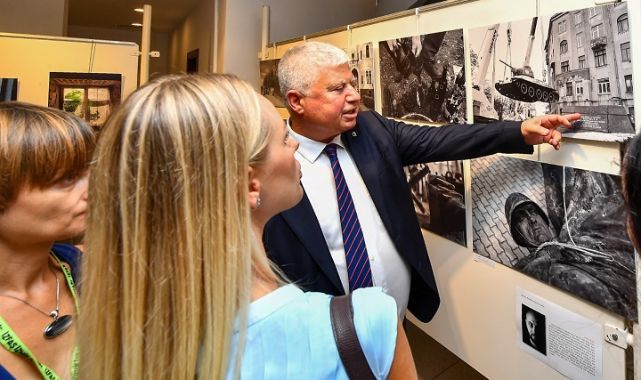 Serginin açılışında konuşan İzmir Büyükşehir Belediyesi Başkan Vekili Mustafa Özuslu, bu sergi ile birlikte Chernivtsi’nin zengin tarihini, direnişini ve dayanıklılığını gözler önüne seren farklı objektiflerin yansımasından bir yolculuğa çıktıklarını söyledi. Türkiye ile Ukrayna arasındaki tarihi bağların asıl malzemesinin uluslararası çıkarlar değil asla kopmayacak kültürel benzerlikler ve özdeş duygular olduğunu ifade eden Özuslu, “Bu sergi belki de sırf bu nedenle çok kıymetli. Buraya gelen heyetle, İzmir ve Ukrayna arasındaki bağların daha da güçlendirilmesi için ortak iradeyi konuştuk. Bu dostluğu kalıcı hale getirmek istiyoruz. Ancak dostluğu yaşatacak olan şey protokollerden ziyade bizim kalplerimizdeki sevgidir. Onu da burada görüyoruz. Chernivtsi ve İzmir arasındaki kültürel etkileşimi ve dayanışmayı sürdürmek adına önemli bir adım olan ‘Zamanın Ötesinde’ sergisine katkı sunan herkese teşekkür ediyorum. İki şehir arasındaki ilişkilerin daha da güçlenmesini temenni ediyorum” diye konuştu.