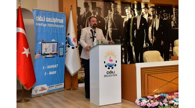 Başkan Utku Gümrükçü, e-imar ve e-ruhsat dijital uygulamalarını Belediye meclis salonunda düzenlenen toplantıyla anlattı. Toplantıya Çiğli Kaymakamı Kaya Çıtak, Çiğli Esnaf Odası Başkanı Arif Altıkulaç, Mimarlar Odası, İnşaat Mühendisleri Odası, Makine Mühendisleri Odası, Jeoloji Mühendisleri Odası, Jeofizik Mühendisleri Odası, Harita Mühendisleri Odası İzmir şube yöneticileri, İzmir Ticaret Odası yetkilileri, Tüm Teknikerler Birliği, Yapı Denetimleri Şirketleri Birliği ve müteahhitlik derneklerinin temsilcileri ile meclis üyeleri katıldı.
