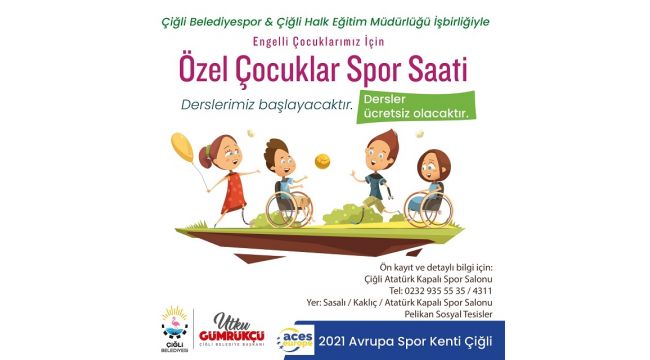 Sportif atılımla binlerce gence dilediği branşta spor yapma imkanı sunan Çiğli Belediyesi, İlçe Halk Eğitim Müdürlüğünün katkılarıyla kadın ve özel gereksinimli çocuklara yönelik ücretsiz spor kurslarını faaliyete geçirdi.