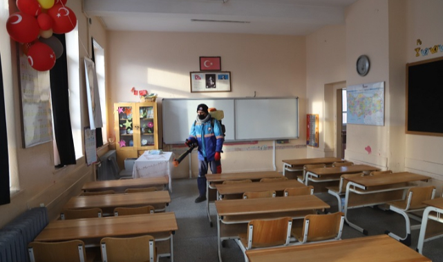 Başkan Kayalar, öğrencilerin ve öğretmenlerin dezenfekte ilaçlarından etkilenmemeleri için okullardaki çalışmalara yarıyıl tatilinde ağırlık verdiklerini belirterek şunları kaydetti:
