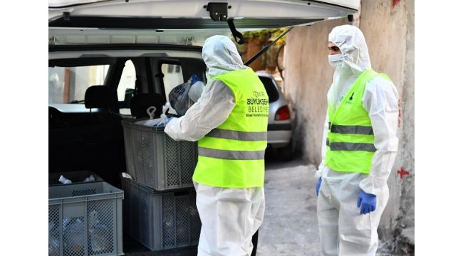 İzmir Büyükşehir Belediyesi’nin iştiraki Grand Plaza’ya ait ekipler Büyükşehir Belediyesi’ne gelen talepler doğrultusunda metropol ilçelerde yemek dağıtıyor. Büyükşehir ekipleri, koruyucu kıyafetleriyle sosyal mesafe ve hijyen koşullarına dikkat ederek yemekleri kapıya bırakıyor.