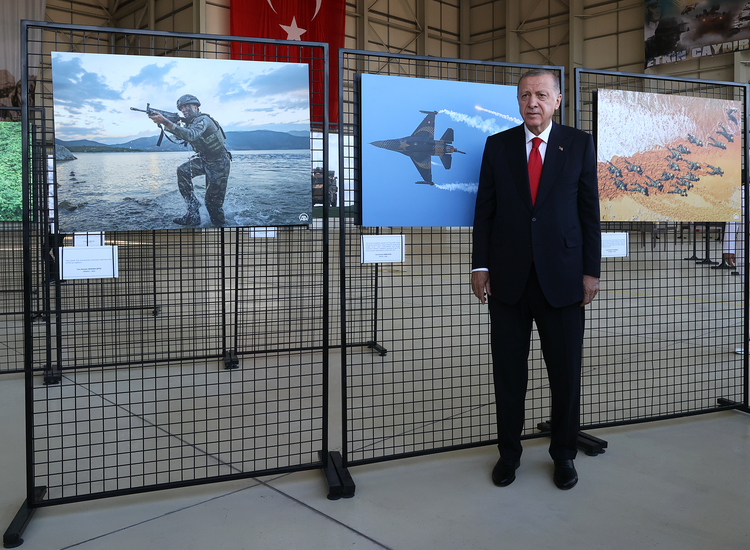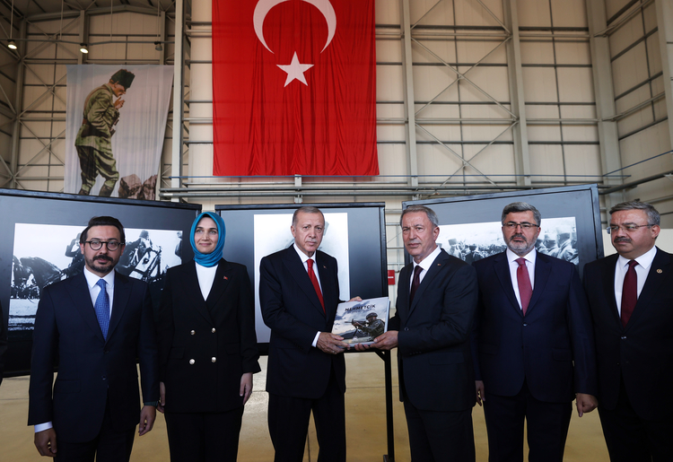 Ziyaretin sonunda Cumhurbaşkanı Erdoğan'a Milli Savunma Bakanı Hulusi Akar tarafından sergideki fotoğrafların yer aldığı "Mehmetçik: Zaferin Askerleri" adlı kitap takdim edildi.